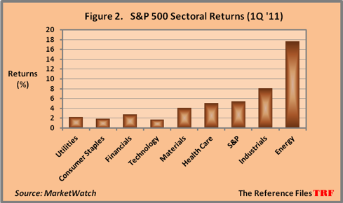 That said, high crude oil prices boosted energy stocks during the first quarter of the year. The Energy sector at S&P for example, showed better than threefold return over the market average (See Figure 2 below).